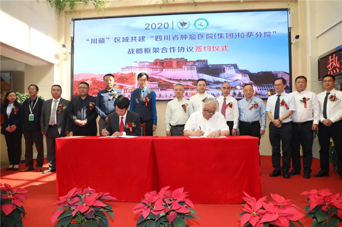 四川省腫瘤醫(yī)院黨委書記郎錦義,西藏阜康醫(yī)療股份有限公司黨委書記、董事長王斌代表雙方共同簽署《川藏區(qū)域共建四川省腫瘤醫(yī)院(集團)拉薩分院戰(zhàn)略框架合作協(xié)議》,隨后郎錦義書記向王斌董事長進行了授牌。